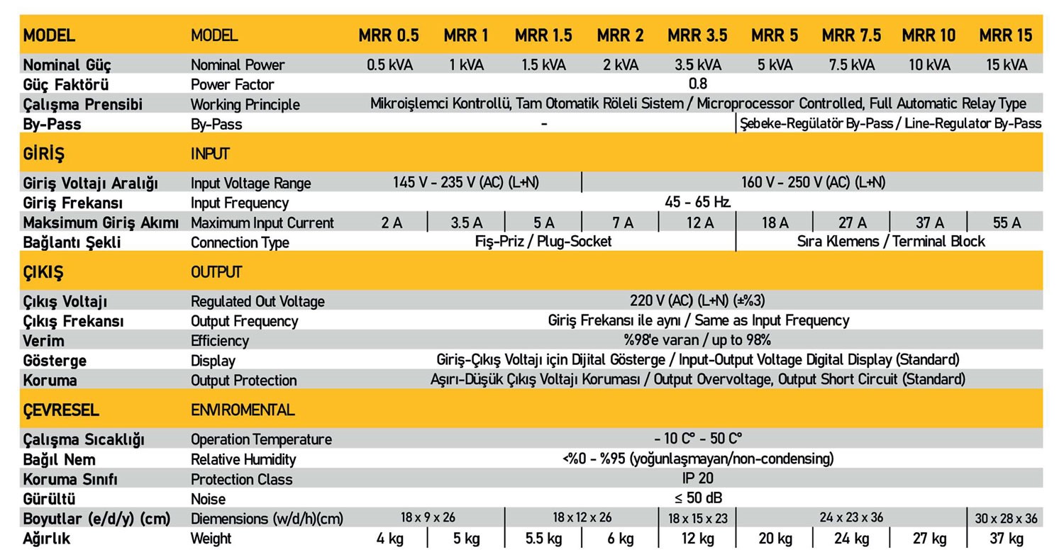 -Giriş 1 Faz + Nötr ; Çıkış : 1 Faz + Nötr