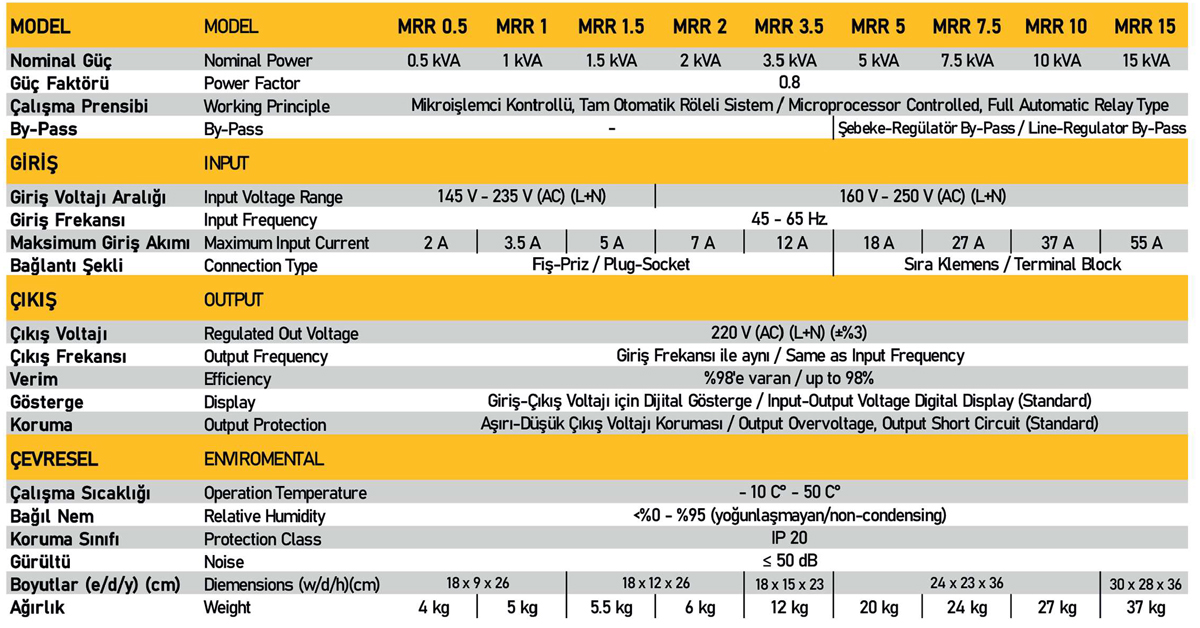 -Giriş: 1 Faz + Nötr ; Çıkış: 1 Faz + Nötr